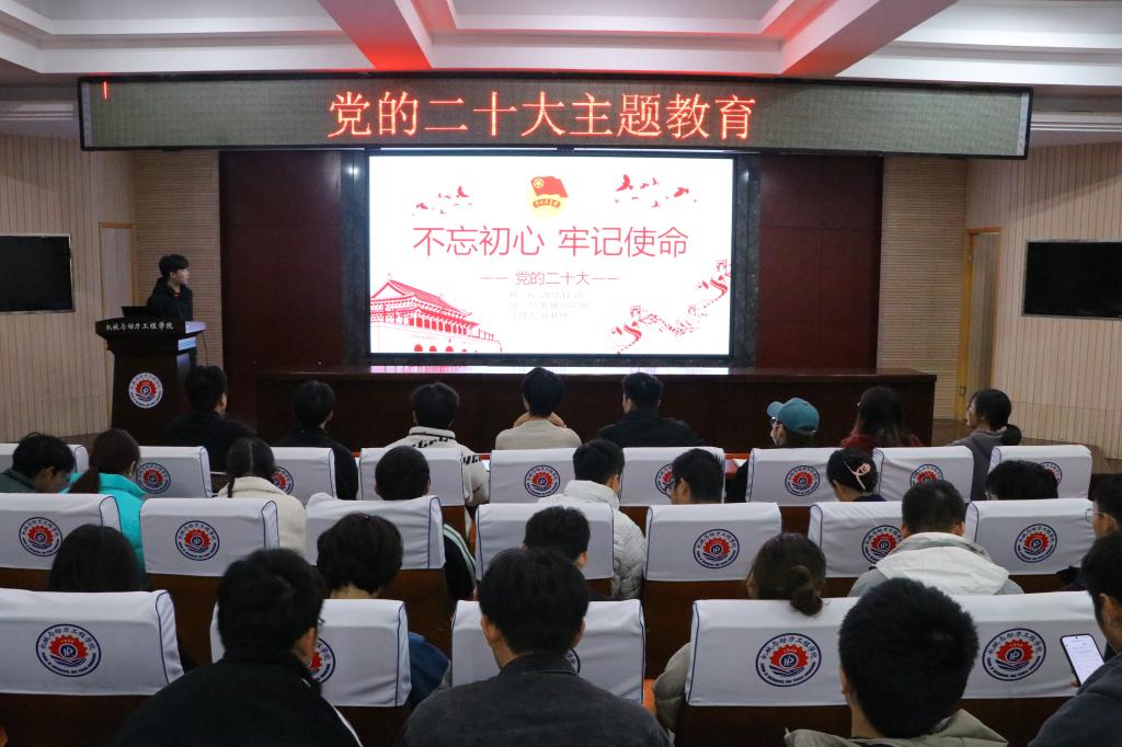 此次教育例会中心思想是“不忘初心、牢记使命”,由学生会学术部部长徐林博主持,他首先从会议召开的时间、地点以及参会情况对党的二十大进行了简要概述,接着,他着重介绍了大会议程,包括听取和审查十九届中央委员会的报告、审查十九届中央纪律检查委员会的工作报告、审议通过《中国共产党章程(修正案)》、选举二十届中央委员会、选举二十届中央纪律检查委员会等。随后,徐林博向成员们深刻解读了党的二十大报告,使同学们进一步理解二十大“高举中国特色社会主义伟大旗帜,全面贯彻新时代中国特色社会主义思想,弘扬伟大建党精神,自信自强、守正创新、踔厉奋发、勇毅前行、为全面建设社会主义现代化国家、全面推进中华民族伟大复兴而奋斗”的主题。最后,徐林博重点强调青年大学生应学习新时代中国特色社会主义思想,弘扬伟大建党精神,呼吁青年学生加强自身党性建设。