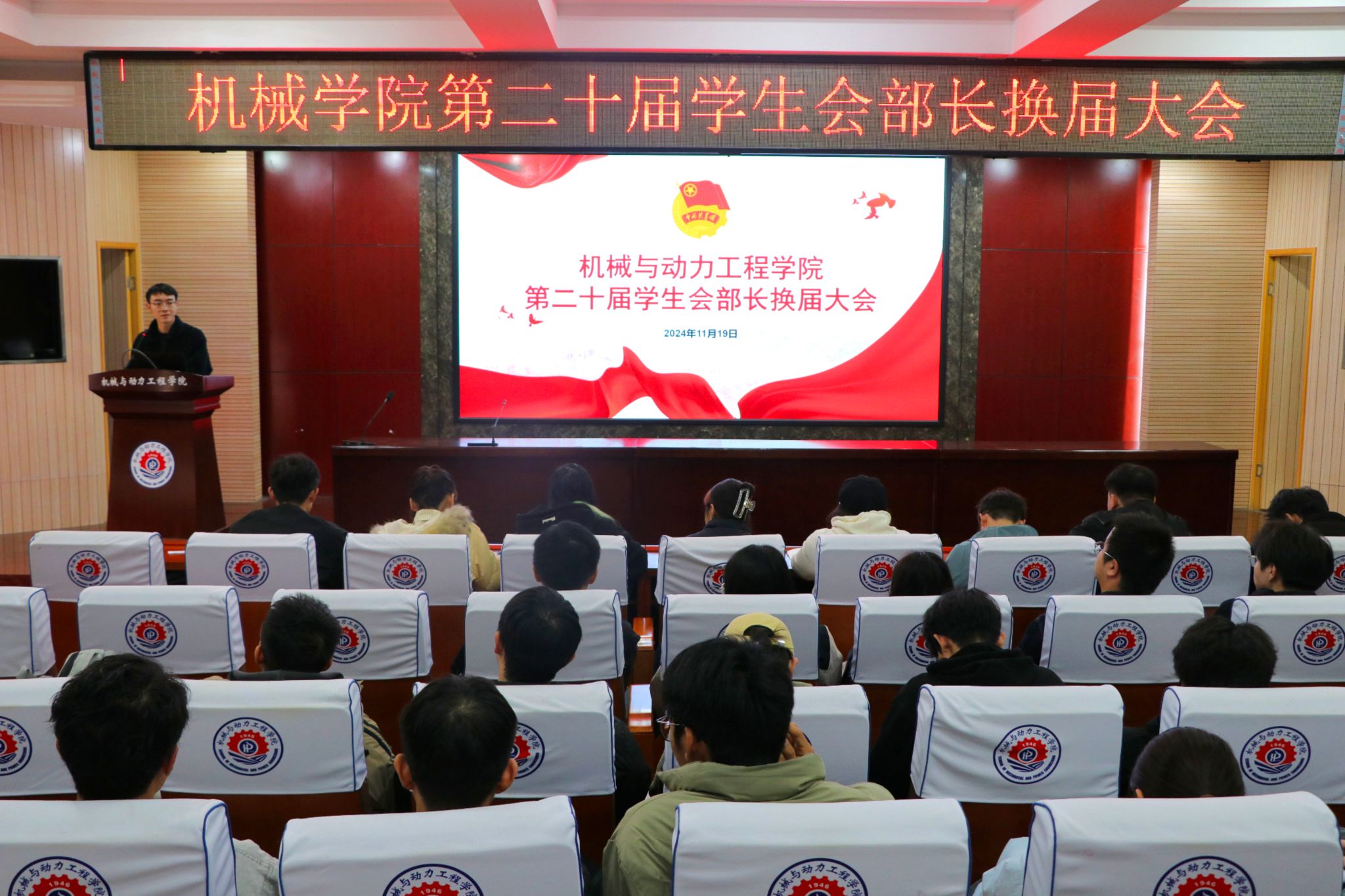 学生会在院楼205会议室举办第二十届学生会部长换届大会。此次大会由学生会主席禹森鹏主持,第二十届学生会全体成员参加本次会议.