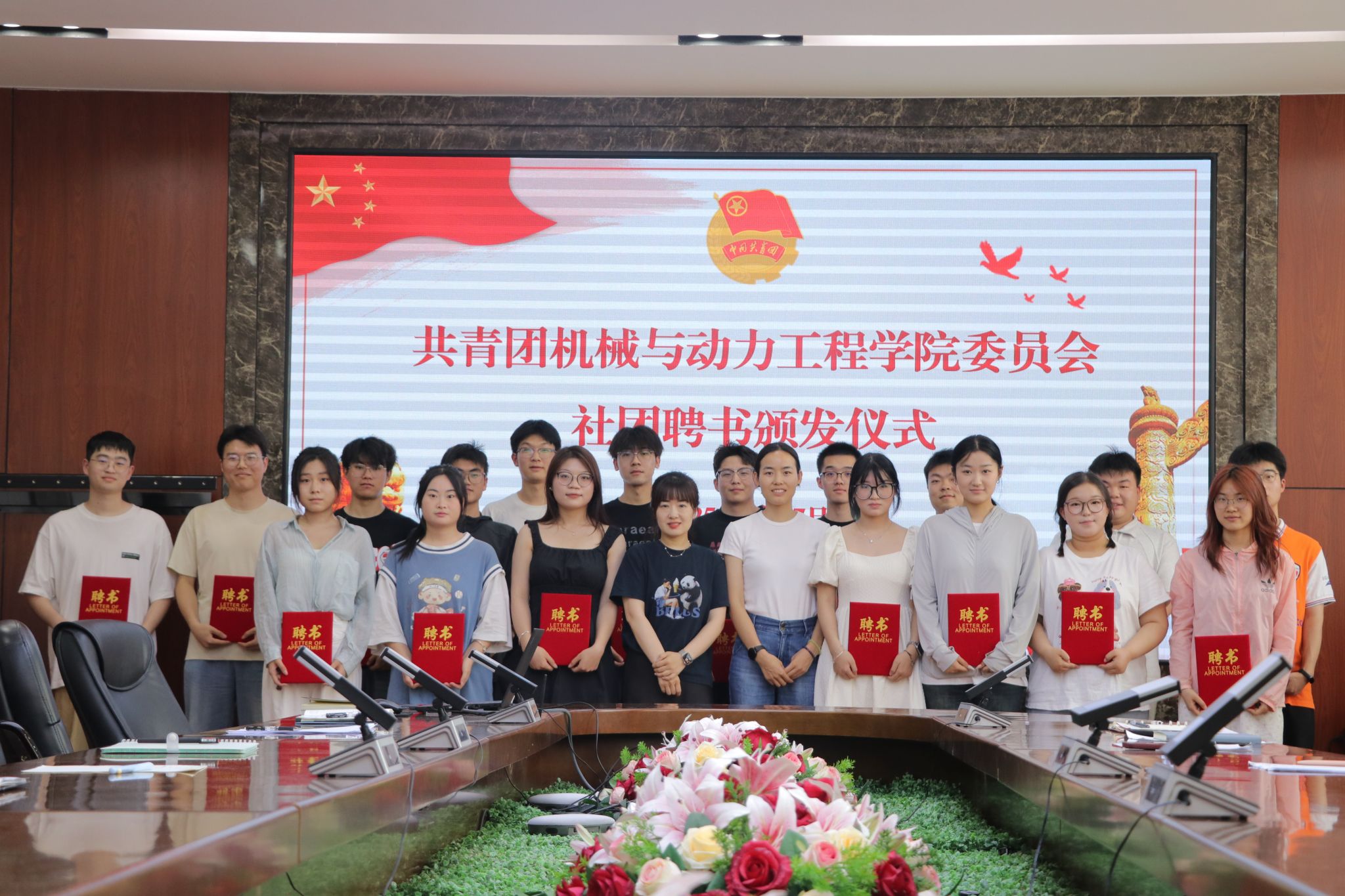 团委书记王思思结合汇报内容对各组织近期的工作成果给予充分肯定,也对工作中存在的不足进行了深入剖析,指出部分工作在执行效率、细节把控等方面仍有提升空间,同时针对未来工作提出了明确要求,希望各组织进一步明确目标,强化责任意识,高效开展工作,确保各项工作高质量完成,以更好服务学院同学。会议最后举行了社团聘书颁发仪式并合影留念。聘书不仅是身份象征,更承载着服务同学、推动社团发展的使命,激励着学生干部以更高标准投身工作。