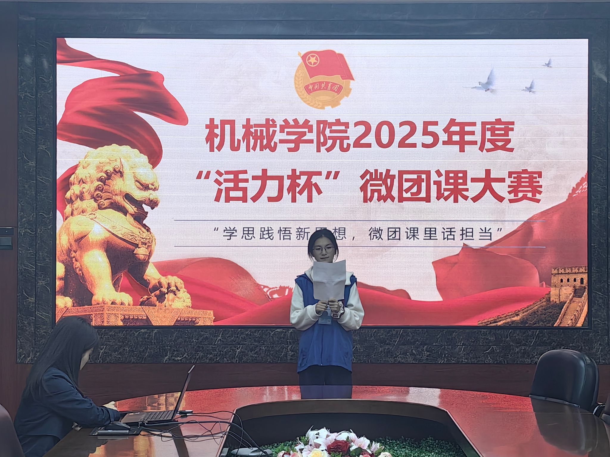 2025年微团课大赛在院楼217会议室开展。本次赛事以“学思践悟新思想,微团课里话担当”为主题,旨在激励更多青年在强国建设、民族复兴的新征程上扛起“请党放心、强国有我”的机械担当。