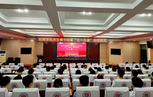 组织学院师生在204、205会议室集中收看“七一勋章”颁授仪式直播现场并引发热议。