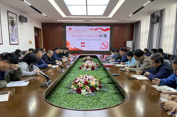 党委书记聂凯以《党员领导干部要立好四德》为题在217会议室为全体教职工上廉洁教育党课。
