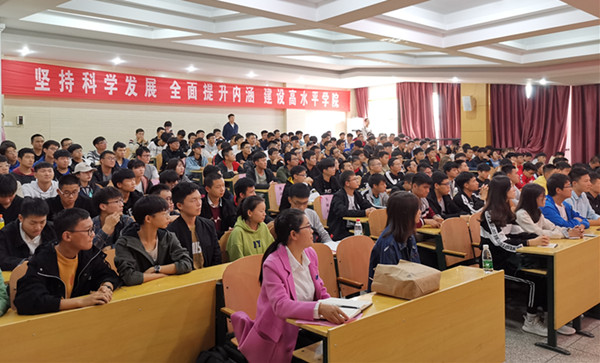 报告会上,魏星义首先以大学生未来职业发展方向为开端,着重分析了大学生刚毕业缺少经验的现实问题,并提倡同学们要敢于尝试;随后,从“找工作三步曲,工作之后的四条路,找到工作之后的思考以及立志”四个方面详细的诠释了当代大学生如何应对社会上的各种挑战,阐释了“努力到无能为力,拼搏到感动自己”的奋斗精神,并强调了“自律即自由”的理念;同时,他还提出要切实将个人的价值与追求同国家和民族发展相结合,直面新机遇新挑战,与时代同进步,谋求新发展,努力实现自己的人生价值;最后,魏星义就同学们所提问题同大家进行了精彩互动,幽默诙谐的言语博得同学们掌声阵阵。