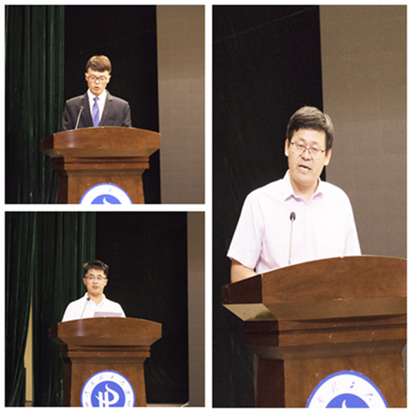 会上,学院教师代表——河南省援疆干部人才、焦作市优秀教师、车辆工程系党支部书记吕宝占,老生代表——2020年推免研究生资格获得者机电1601班赵阳和新生代表——2019级机械类1905班孙旭也分别作了发言。