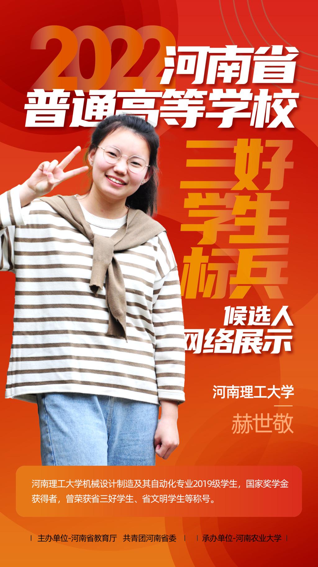 学生赫世敬从85名候选者中脱颖而出,成功获评为河南省普通高等学校“三好学生标兵”。