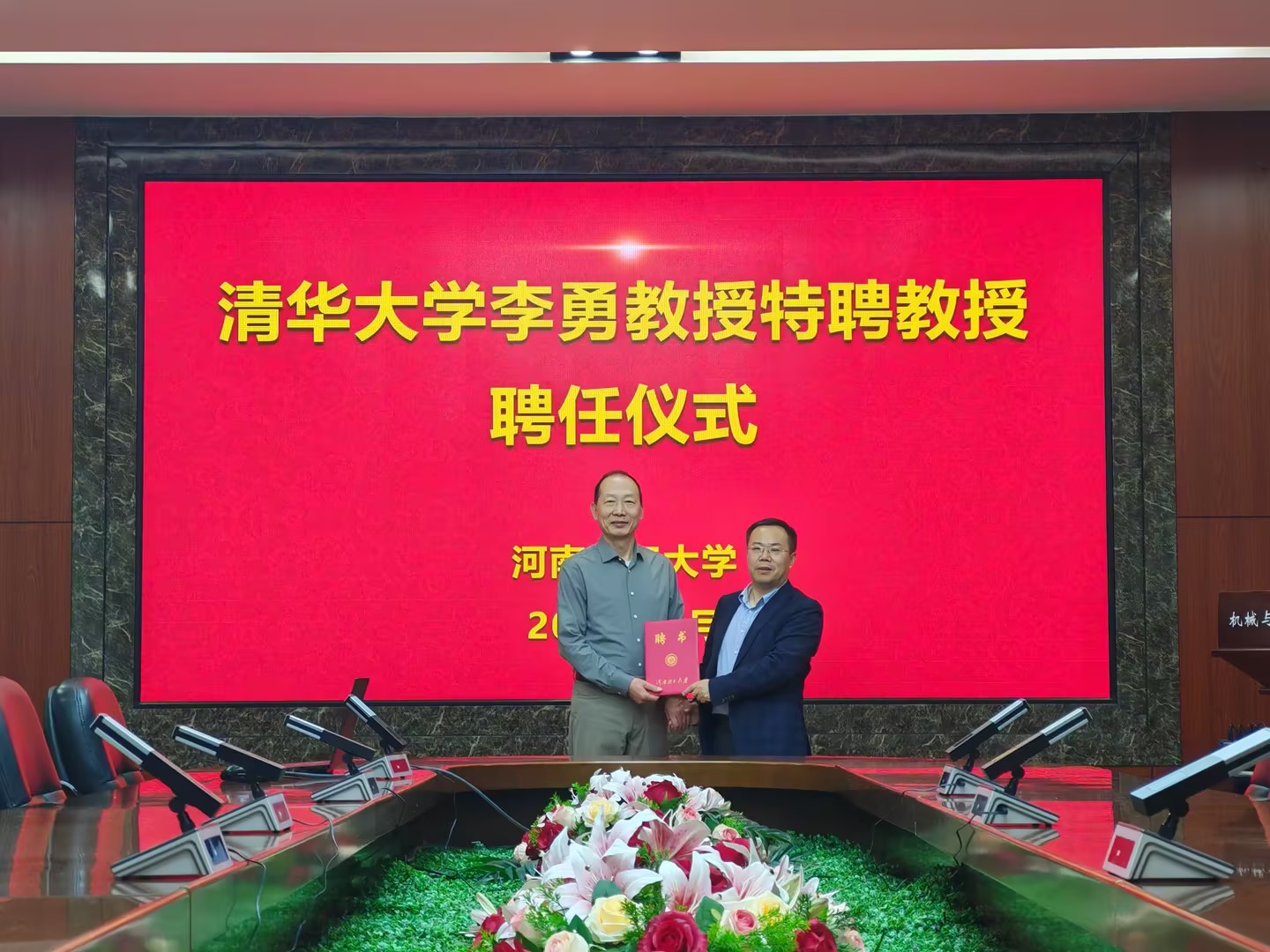 在学院217会议室举行李勇特聘教授聘任仪式。学院党政领导班子及部分教师代表参加了此次聘任仪式。聘任仪式由院长明平美主持。