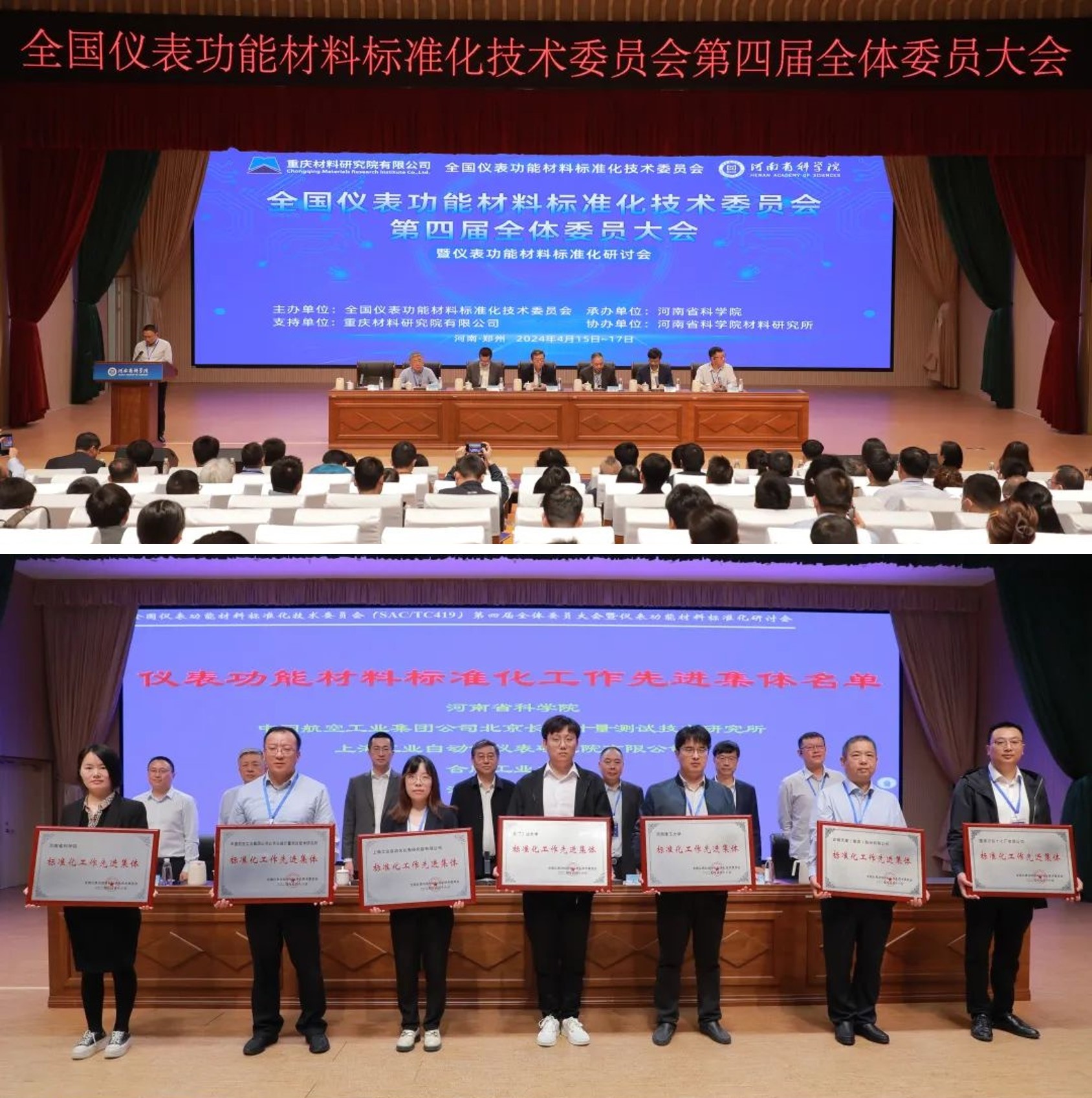 4月15-16日,全国仪表功能材料标准化技术委员会(SAC/TC419)(以下简称“标委会”)第四届全体委员大会暨仪表功能材料标准化研讨会在河南省郑州市召开。会上为第四届标委会主任委员、副主任委员,秘书长、委员颁发证书,并对第三届标委会优秀的工作集体和标准化工作者进行表彰。我校荣获全国仪表功能材料标准化工作先进集体。