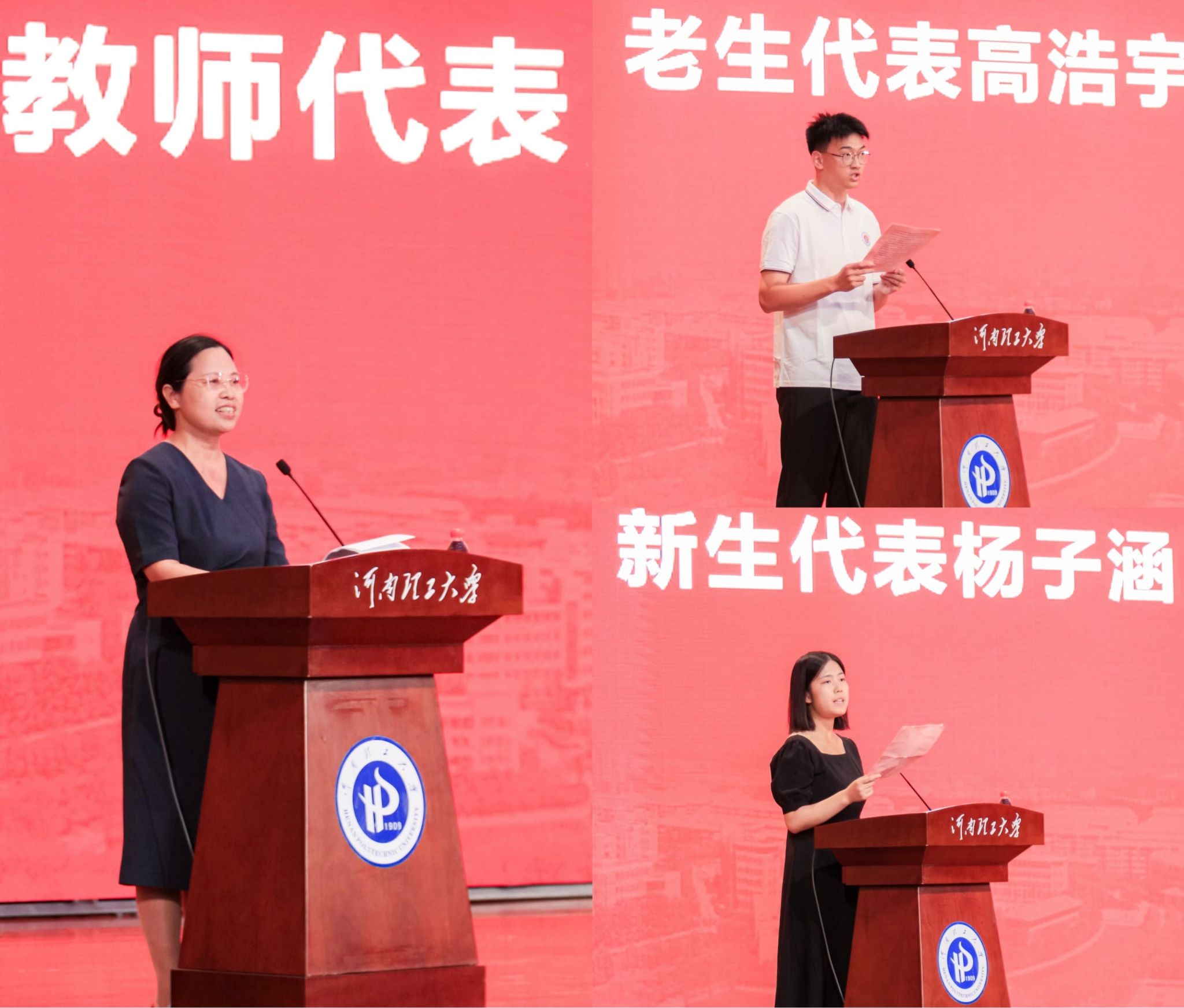 教师代表张会端教授以自己的奋斗、求学的人生经历与同学们进行了充分的交流,并建议新生坚定理想、规划未来和学好专业知识、提高自身修养。在校学生代表高浩宇畅谈自己对大学和专业的理解和感悟,并表示将在新的学习阶段永远保持着朝气蓬勃的态度,不断提升自己的专业能力,努力提升自己的格局与胸怀。新生代表杨子涵表示,要踏实学习、丰富知识、增长才干,倡议同学们砥砺前行、担当奋进,立志做新时代的“新青年”。