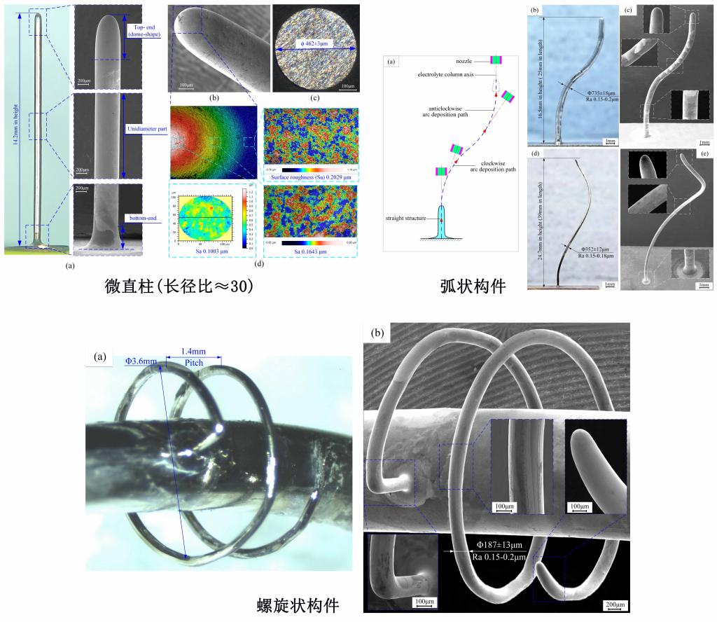 明平美教授团队多年来在这方面持续开展研究。近日,国际增材制造领域TOP期刊《Additive Manufacturing》(IF:10.998)刊发了该团队的最新研究进展(Wang Wei, Ming Pingmei, Zhang Xinmin, et al. Additive Manufacturing of Three-Dimensional Intricate Microfeatures by Electrolyte-Column Localized Electrochemical Deposition. Additive Manufacturing, 2022, 50: 102582.)。