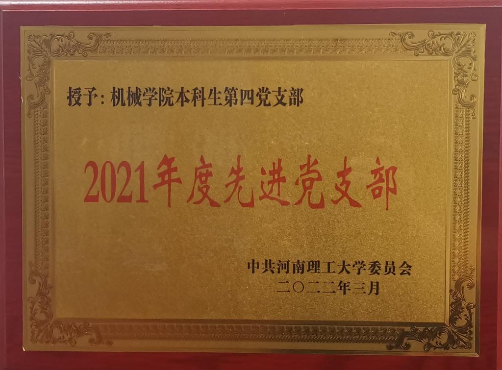 本科生第四党支部获评“2021年度先进党支部”称号,党支部书记胡相忠获评“2021年度优秀共产党员”称号。