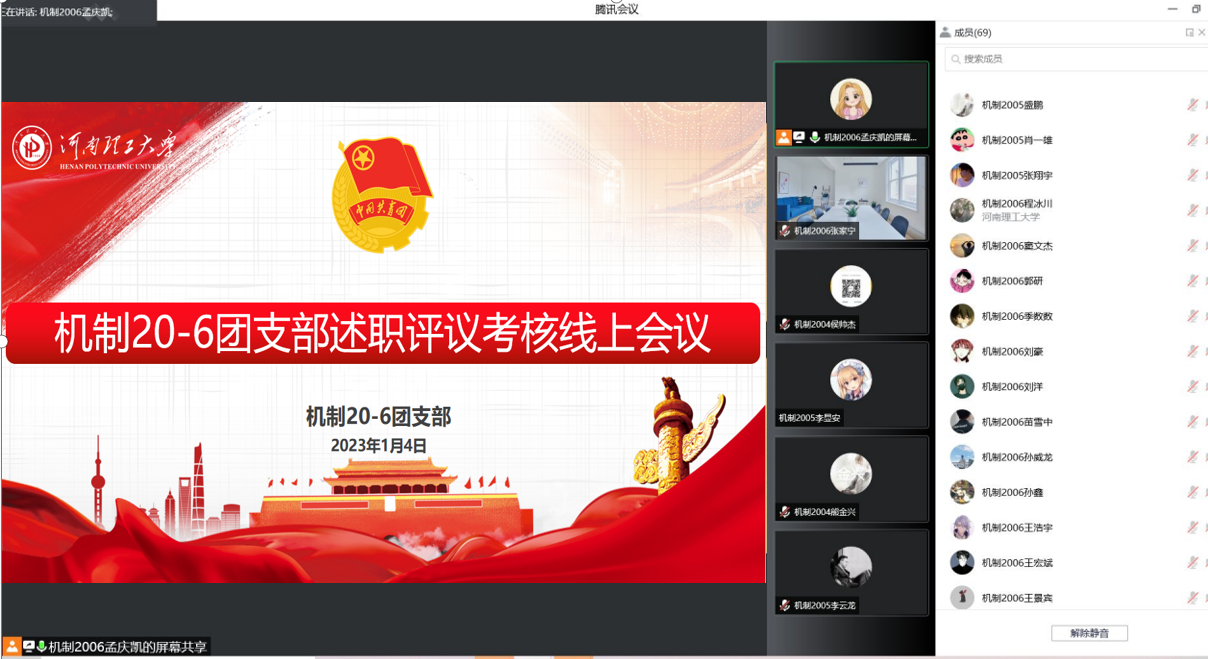 团委在全院各本科生班级团支部开展了2022年度基层团组织书记述职评议考核,共有106位班级团支书参加了述职评议考核。