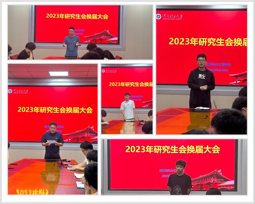 2023年研究生会换届大会于机械院楼204顺利举行。本次会议由研会主席团成员朱飞主持,研管办主任曹月坤、研究生辅导员耿方及研会全体研究生参加了此次会议。