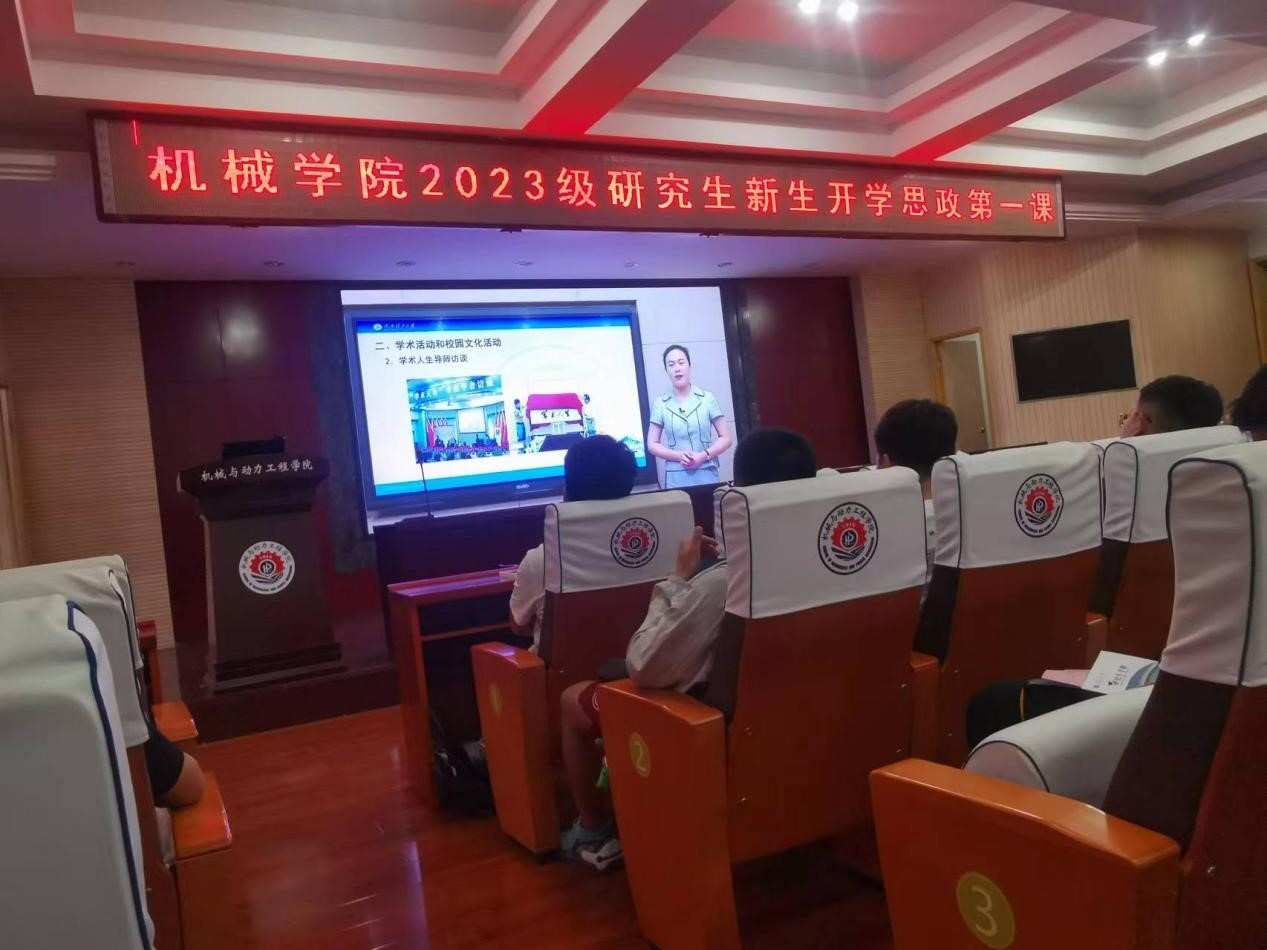 在机械院楼205会议室组织学习研究生新生思政第一课,2023级全体新生参加此次学习。