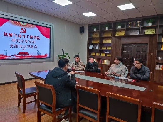 2023年11月28日下午,机械与动力工程学院四个研究生党支部在203党员之家会议室召开研究生党支部支部书记交流会。研究生辅导员耿方、银燕毅、上一届书记代表李坤坤同志以及各党支部的新任书记参加本次交流会。