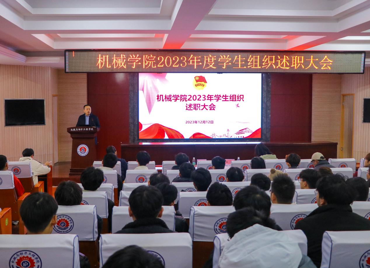 党委副书记王帅上台发言对各学生组织的述职做出总结评价,并希望新的一年大家能够总结经验,弥补不足,取得更大的成绩,他强调:要发挥榜样作用,强化责任担当;加强组织建设,提升综合素质;培养创新意识,打造特色品牌;牢记服务宗旨,助力学院发展。