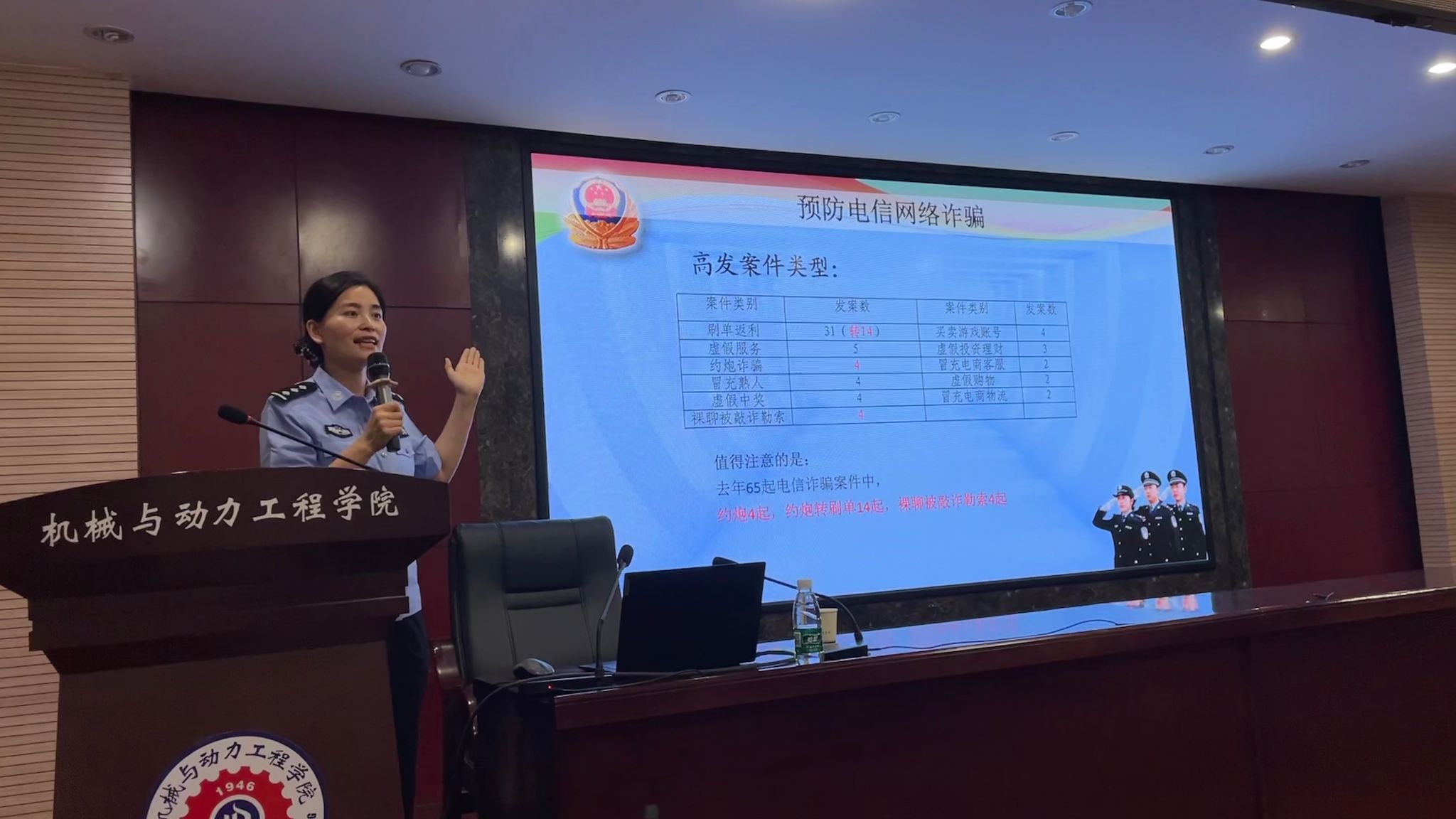 李伟光就大学生群体如何避免被诈骗,不参与电信网络违法犯罪进行了普法宣传,并结合自身的法律工作经历,向同学们介绍了电信诈骗的定义和特点、常见的诈骗手法、如何识别电信诈骗以及防范措施。苏文君通过现场讲座、PPT展示、案例解析、现场知识问答等互动形式,详细陈述了电信诈骗12大手段及应对之术,包括网络兼职、淘宝刷单诈骗,冒充网购平台客服、快递客服,冒充网购平台客服、快递客服,网上贷款等12大骗术。对各种诈骗手段、应对策略进行了细致、全面的介绍,通过深入浅出地讲解,提醒同学们,电信诈骗诡计多端,要做到“四不”——不听、不信、不汇款、不转账;常念“三字经”——多分析、多询问、多提防、打热线;做到“7个一律”、“8个凡是”,及时止损。同时,在现场指导师生安装“国家反诈中心”APP及详细介绍使用方法,通过学习APP里知识可以有效避免各种网络诈骗的发生,使大学生群体对防范电信诈骗知识入耳、入脑、入心。