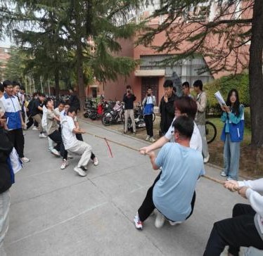 在比赛期间,每个同学都竭尽全力,赛场上每一个人都沐浴在声嘶力竭的呐喊中,每一个参赛选手都挥洒出自己青春的汗水,将男儿的热血涂抹在院楼前,为青春刻下无悔的印记。
