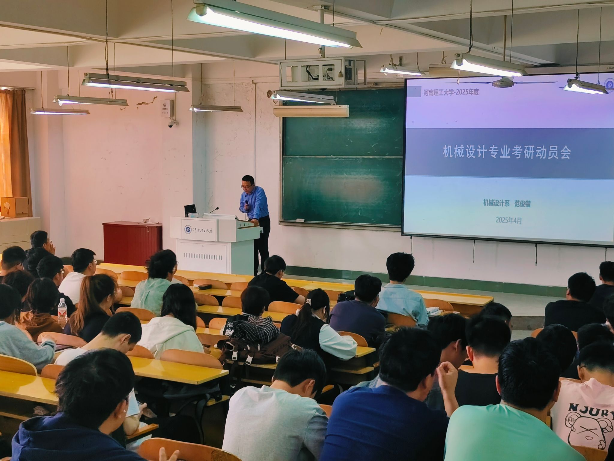 2022级机械设计制造及其自动化(机设)专业考研动员会在学院305教室举行。机械设计系教研室主任范俊锴老师应邀担任主讲,围绕考研的意义与价值、考研的现状与趋势、考研备考策略与方法等核心议题展开深度分享,2022级机设专业百余名同学参会,互动氛围热烈。