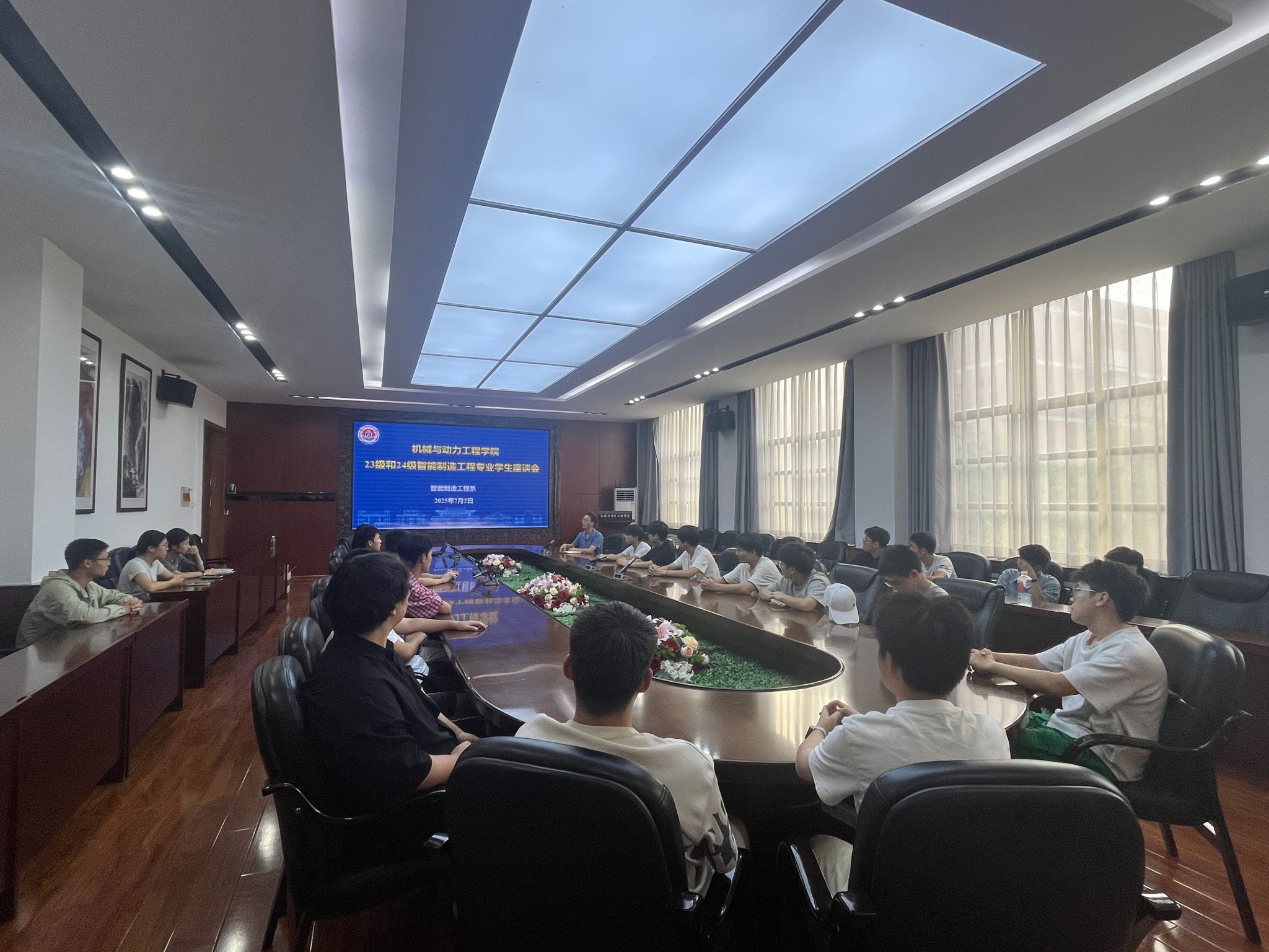 217会议室组织召开智能制造2023级与智能制造2024级学生代表交流会。系主任魏绍亮、党支部书记黄俊杰与来自两个年级的30余名学生代表参加座谈,会议由黄俊杰主持。