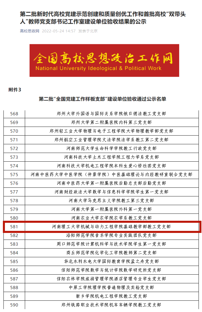 5月24日,教育部公布了第二批新时代高校党建示范创建和质量创优工作和首批高校“双带头人”教师党支部书记工作室建设单位验收结果,快猫短视频